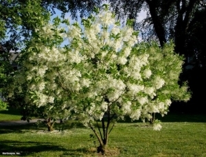 When planting perennials in front of Fringe Tree leave some space for the shrub to grow but since it’s a slow grower your perennials don’t have to go out much further than 3′ from the shrub’s current size. By the time it overgrows them it will be time to divide anyway.
