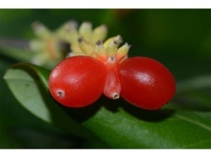 Coral honeysuckle (Lonicera sempervirens) is a stunning plant, named the wildflower of the year in 2014. It is a semi-evergreen vine with glossy green oval leaves. Upper surfaces of leaves are dark green and pale green underneath. Leaves are opposite with the uppermost pair distinctly fused. The flowers are trumpet shaped with red on the outside and yellow inside, grow in whorled (ring-shaped) clusters at the end of stems and are up to 2 inches long. Flowers bloom from March – June and have little or no fragrance. The berries are bright red. This honeysuckle can climb or spread as a groundcover from 3 to 20 feet long.
