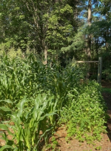 Straw mulch with sweet corn and buckwheat covercrop. Photo: Fern Campbell