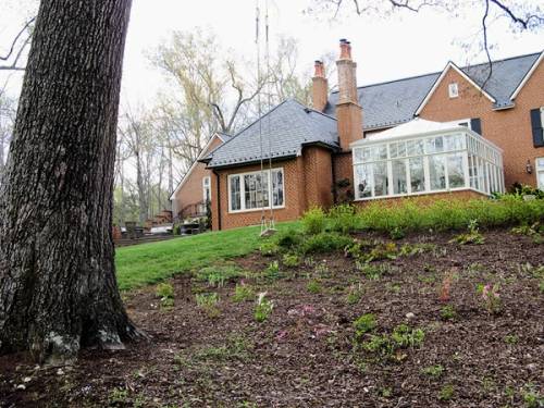 The gardens in front of the house are of formal type.  Others, like underneath one of their very big trees with swings are less formal and contain native plants.